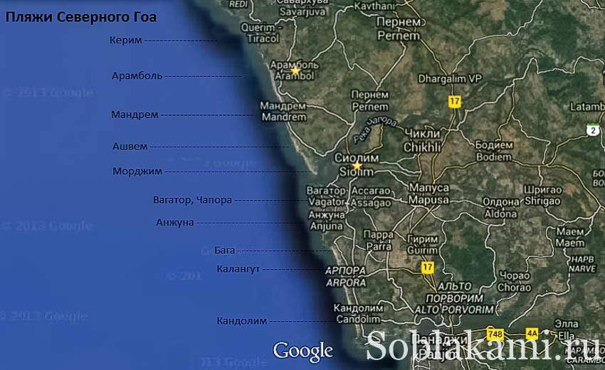 Здесь карта с моими отметками и интерактивная карта Северного Гоа, которую можно рассмотреть более подробно.