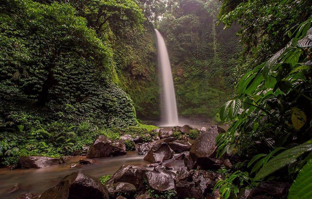 В полутора часах езды от Денпасара находится один из самых популярных и красивых водопадов на Бали — Нунг-Нунг. Увидеть его можно уже с парковки, но чтобы лицезреть стремительный поток падающей воды, необходимо преодолеть путь в 500 ступенек. Но это определенно стоит того! Прохождение всего маршрута займет не более 30 минут. Ступенчатая тропа снабжена крепкими перилами и беседками. Нунг-Нунг утопает в тропической растительности и вытекает прямо из скалы. Поток воды настолько мощный, что образуется облако из капель. Высота водопада составляет около 90 метров. У подножия есть восхитительная лагуна, в которой можно искупаться и насладиться прекрасным видом падающей воды. Рядом с водопадом расположены рисовые террасы и целые плантации клубники.