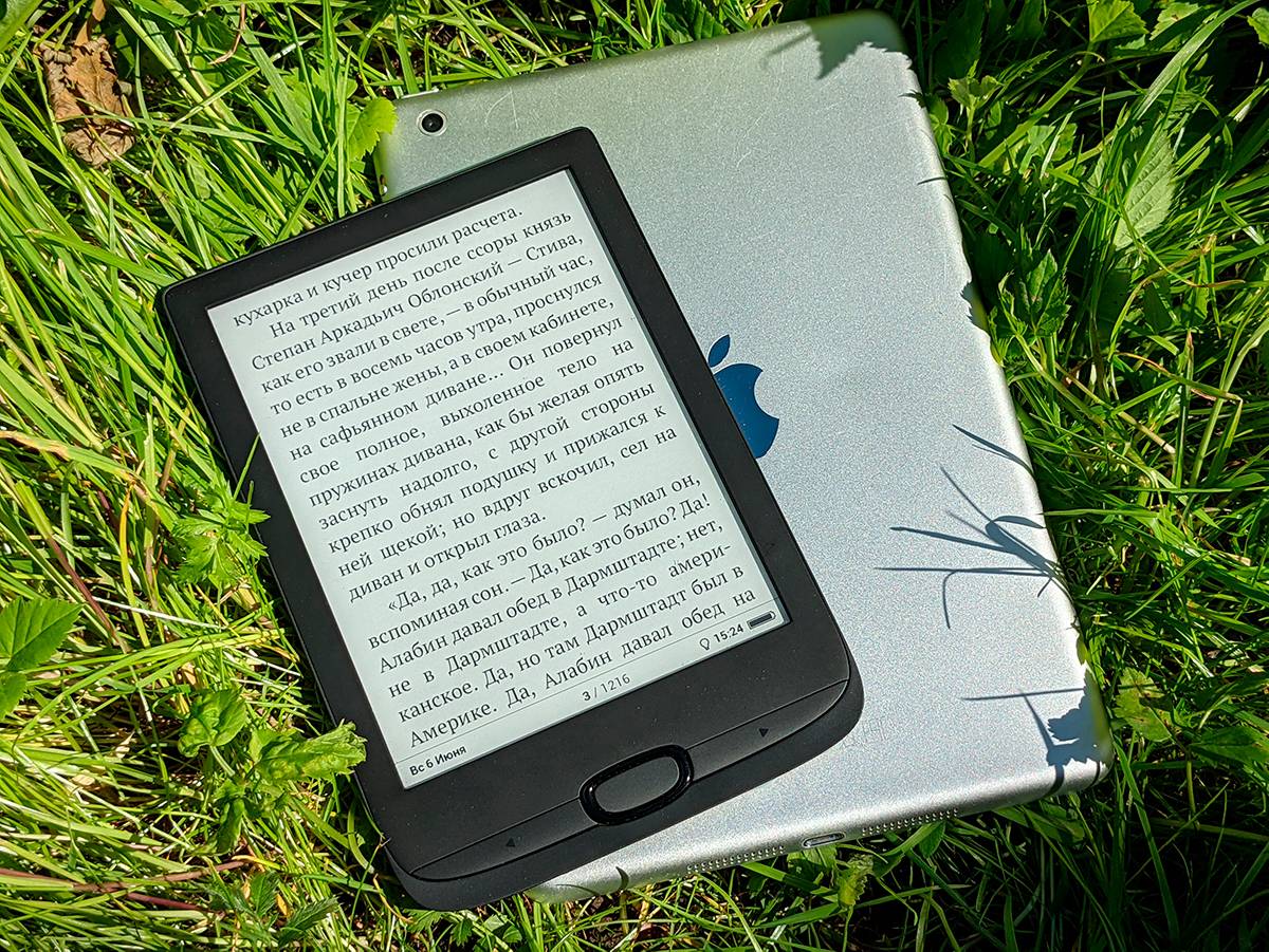 iPad у меня появился чуть раньше, в 2018 году, и он сравним с большими книгами. Планшет идеален для чтения в помещении. В остальном, это большой и тяжёлый гаджет, который куда угодно с собой не возьмёшь. Исключение из правил — iPad mini. Он, как и электронная книга, спокойно помещается в поясную сумку. Правда, от экрана iPad у меня глаза уставали почему-то даже больше, чем от iPhone.