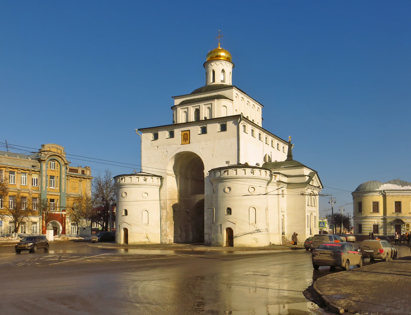 Владимир. Собор Успения Пресвятой Богородицы, Золотые ворота и храм Покрова на Нерли− достопримечательности, сохраняющие культурное наследие Руси 17 века. Над украшением интерьера зданий трудились Андрей Рублев и Андрей Боголюбский.