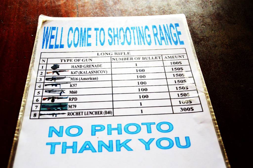 Приехав на вокзал, нас сразу же встретил рикша на своём тук-туке (байк с прикреплённой сзади «каретой» для перевозки людей). В руке у него был прайс с картинками, на которых были изображены местные достопримечательности, бары и люди с оружием. Я увидел картинку человека с противотанковым гранатомётом в руках.