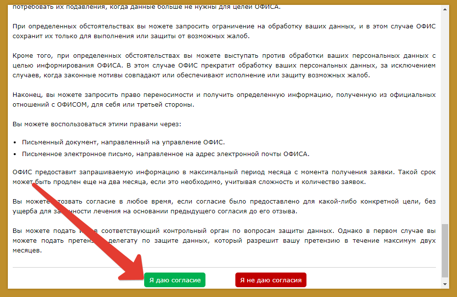 - Нажимаем Continue и на следующей странице соглашаемся с правилами использования персональных данных.