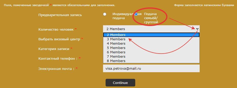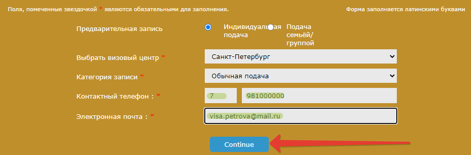 Запись должна быть оформлена на каждую запрашиваемую визу, в том числе на детей, имеющих свой паспорт или вписанных в паспорт родителей. Если подаете документы только на ребенка, то на прием нужно записывать и себя, и ребенка.