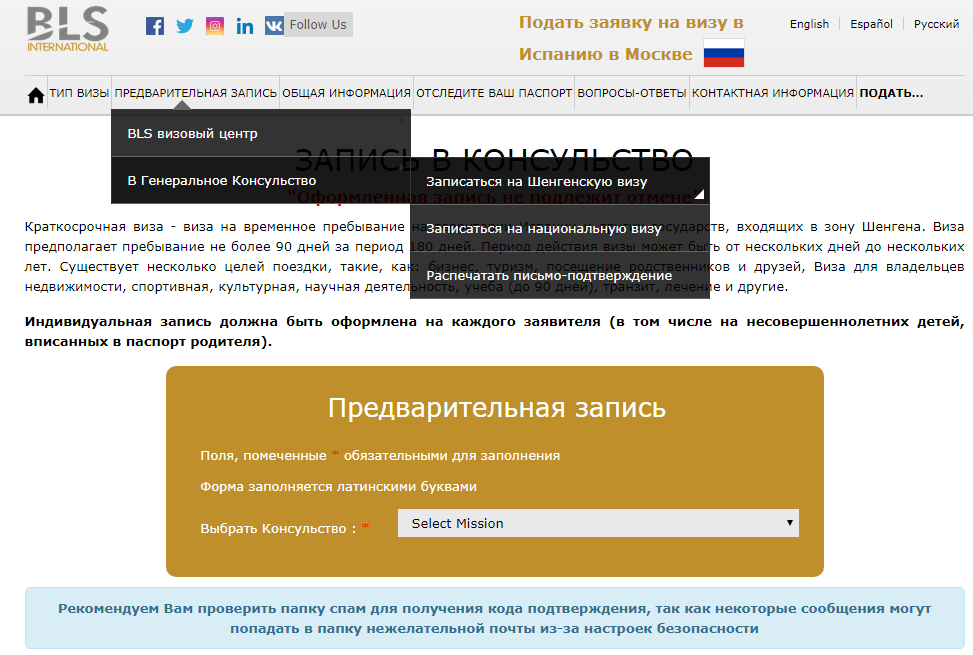 Этап V. Записываемся в визовый центр Испании