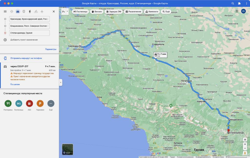 День 2: Краснодар → Владикавказ → Степанцминда