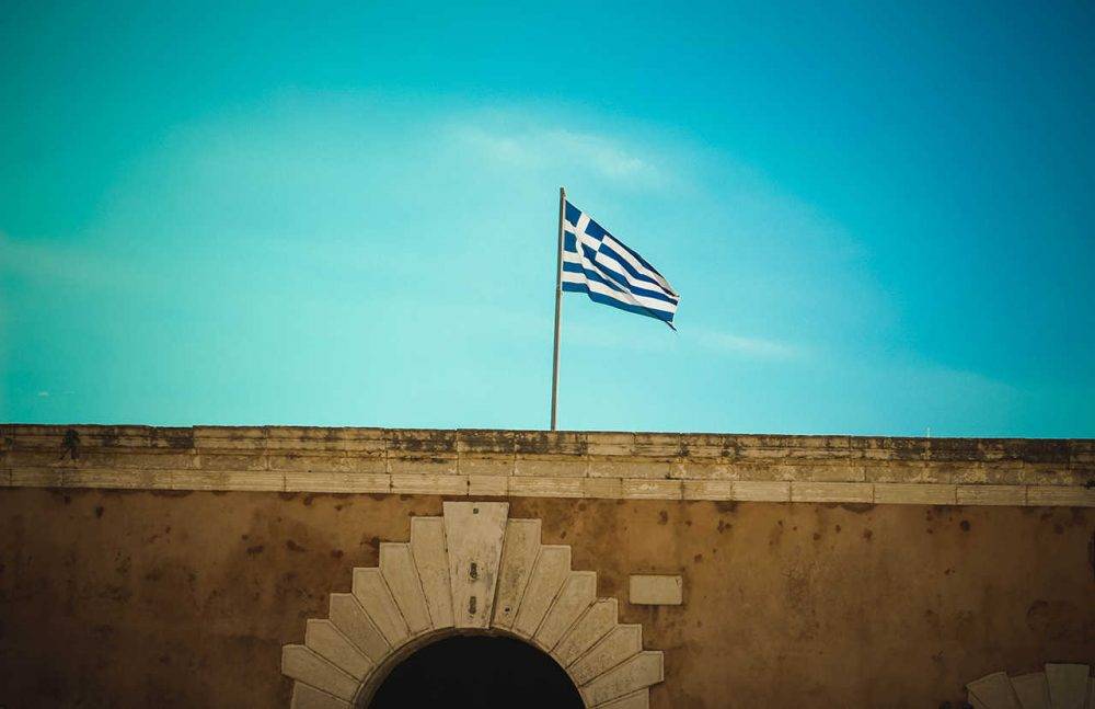 Греческий флаг на острове (Фото unsplash.com / @reskp)