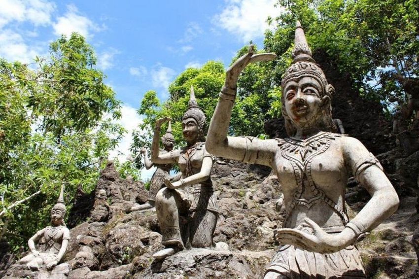 Посреди тропической растительности и горных отрогов расположена одна из лучших достопримечательностей – магический сад Будды – совместное «творение» природы и рук человека. На сравнительно небольшой площади собраны уникальные и загадочные скульптуры, в том числе – самого Будды, окутанные лианами, что придает объекту культурного наследия еще большей загадочности.