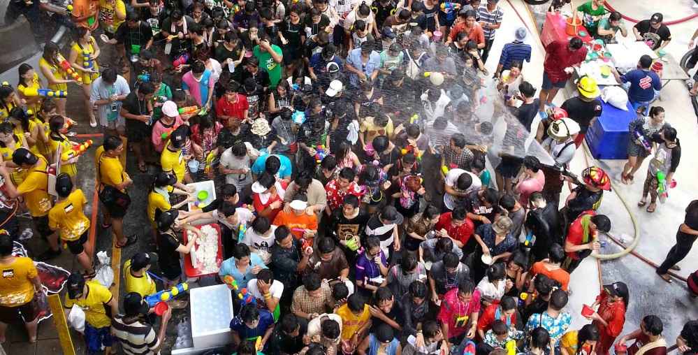 Обливание водой во время фестиваля Сонгкран на Тайский новый год