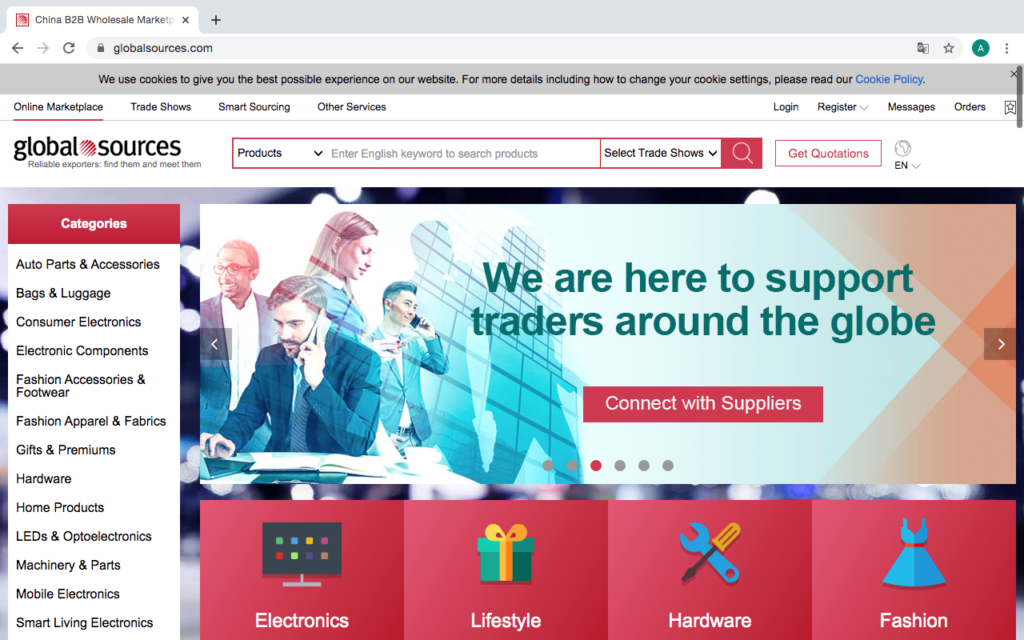 GlobalSources.com – это надежный и хорошо известный китайский оптовый сайт. Вы можете выбирать продукты из самых разных категорий, и они также имеют очень строгие протоколы безопасности покупателя.