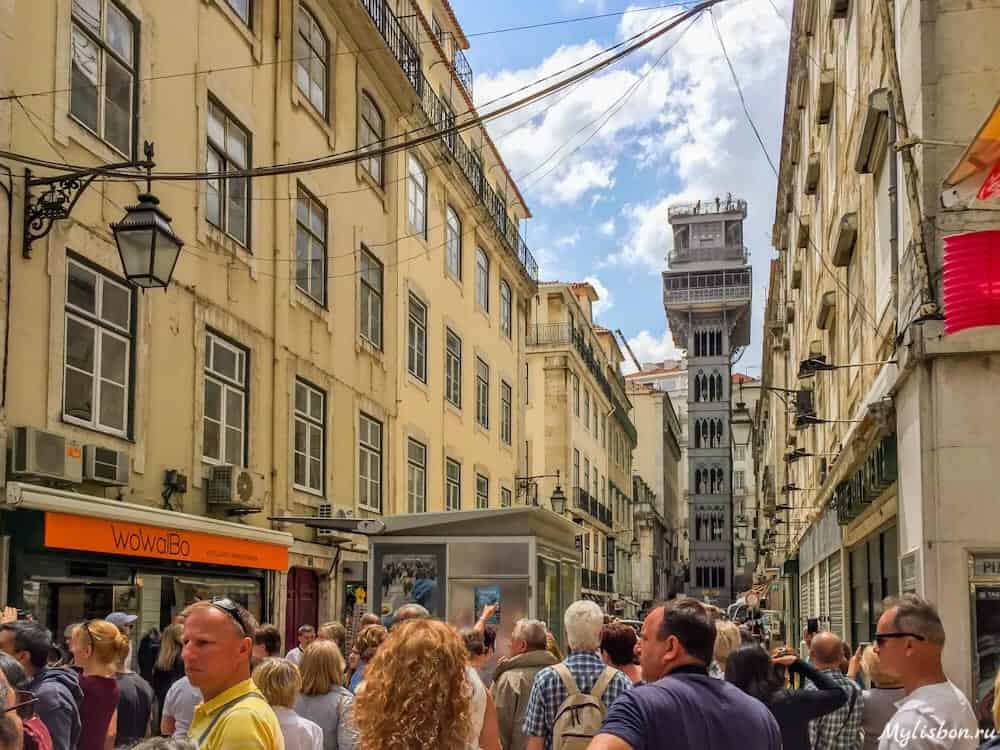 Сегодня мы исследуем районы Шиаду, Байрру Алту и Принцип Реал. Возвращайтесь на площадь Россиу и оттуда пройдите к лифту Санта Жушта. Вы можете подняться на нём по предварительно заправленной транспортной карте или, если очередь будет пугающе большой, то идите к его вершине в обход пешком — это недалеко (маршрут).