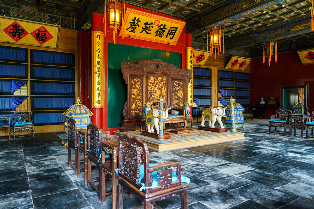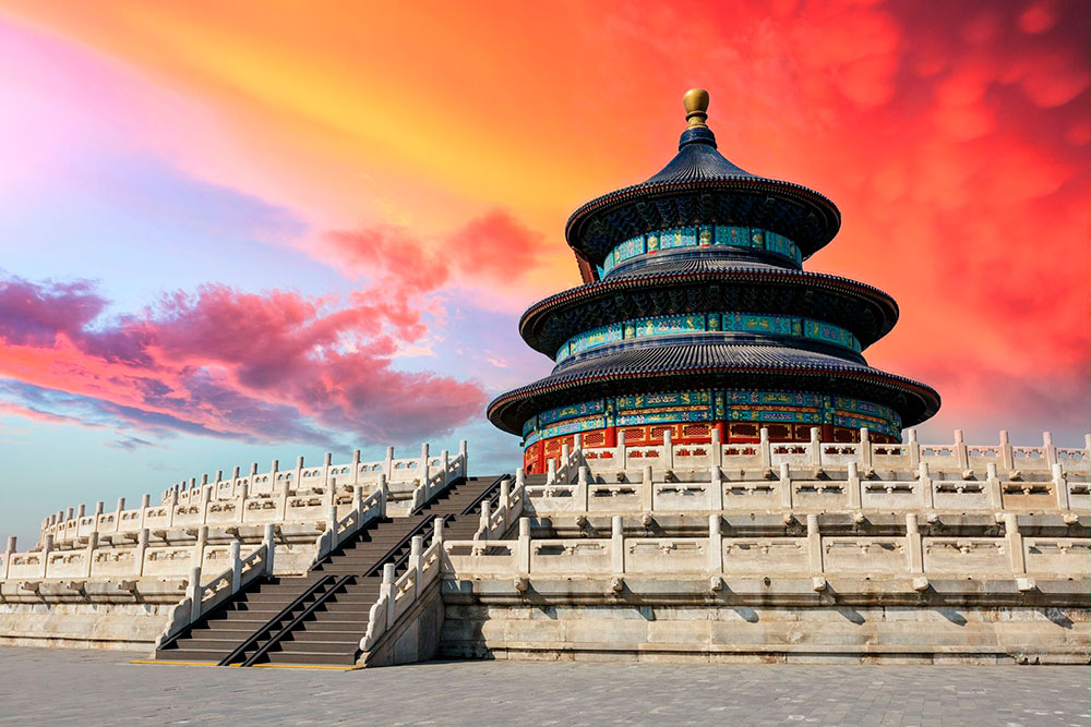 Грандиозный Храм Неба, поражающий многочисленных посетителей своим великолепием, по праву входит в число самых посещаемых достопримечательностей Пекина. Именно здесь ежегодно в течение пяти веков императоры обращались к Небу с молитвой о богатом урожае и процветании государства. Храмовый комплекс состоит из нескольких сооружений, главные из которых имеют круглую форму, так как в представлении древних китайцев круг являлся олицетворением небесных сил. В оформлении стен и крыш молитвенных залов широко используется плитка синих и голубых оттенков, символизирующих цвет неба. На Алтаре Неба, построенном из белого мрамора, правители совершали жертвоприношения. Алтарь интересен своим необычным акустическим эффектом: если, стоя в самом центре Алтаря, негромко произнести слова молитвы, то звук, отражаясь от мраморных плит, многократно усилится. Центральным зданием Храма Неба является Зал молитвы за хороший урожай, примечательный своим внушительным размером, богатым внутренним убранством и яркими китайскими орнаментами.