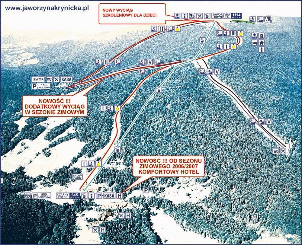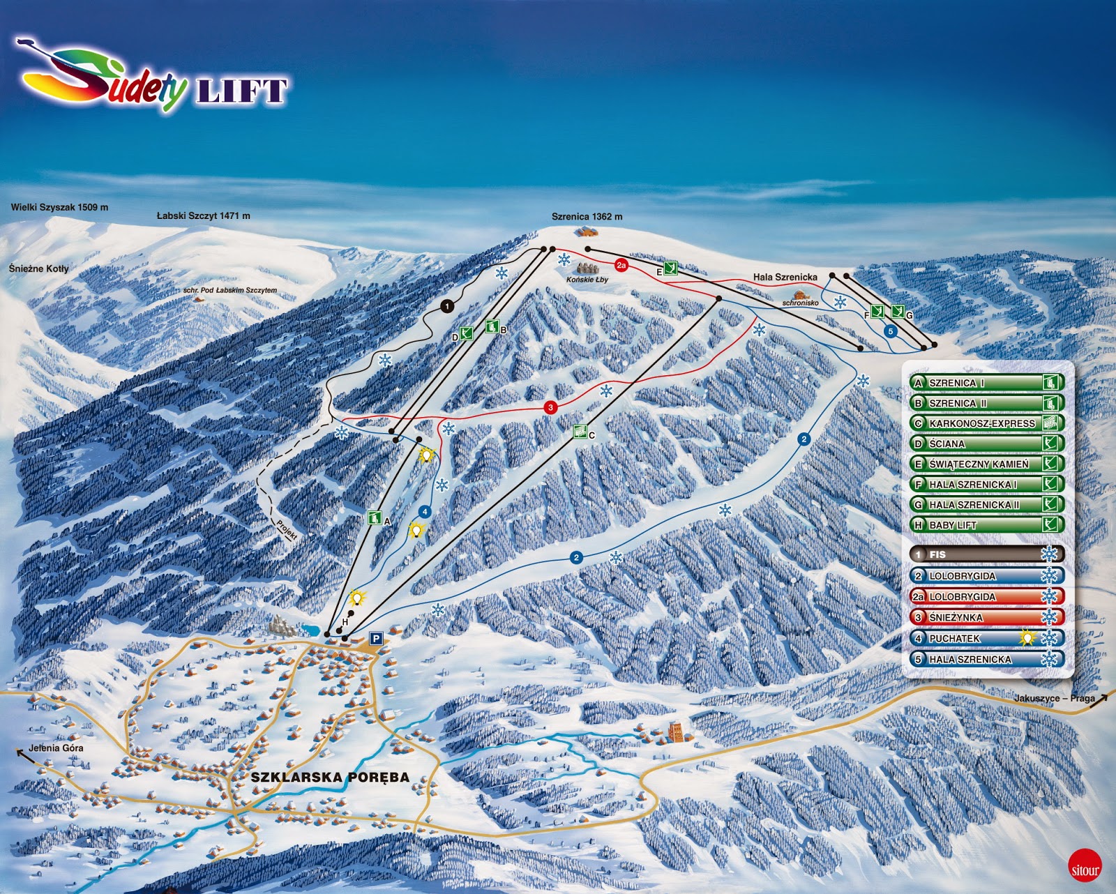 Популярный и востребованный кресельный подъемник на пик Копа (1375 метров) обслуживает три разных трассы: простую трассу “Ян” (400 м), сложную трассу “Злотувка” (3100 м) и профессиональную трассу “Личижепа” (3000 м).