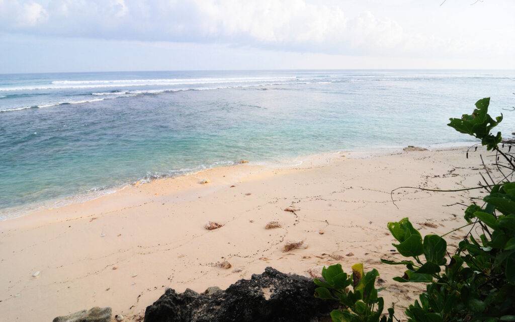 Небольшой пляж с серым песком в отдаленной деревушке. Это уже окраина Северной Куты, поэтому случайные туристы сюда не приезжают и место привлекательно своей аутентичностью. Пляж не для купания, но благоустроен для пляжного отдыха. Можно попрыгать в волнах при желании, но в целом, пляж — не более чем экзотичная декорация к отпуску.