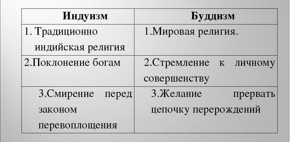 Несмотря на ряд схожих черт, индуизм и буддизм считаются совершенно разными религиозными течениями. Для них характерен ряд важных отличий.