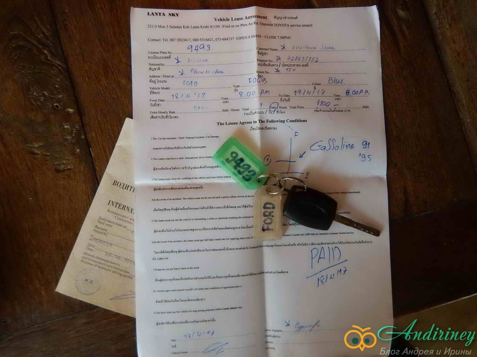 И действительно, утром, в 8 часов, к отелю подъехал серебристый Форд Фокус. Оказалось – это наше транспортное средство. Видимо, поменьше не было, но цена осталась такой же, как и заказывали – 1200 бат. Оформили договор, на смартфон сфотографировал все царапины, помятости, потертости и сколы.