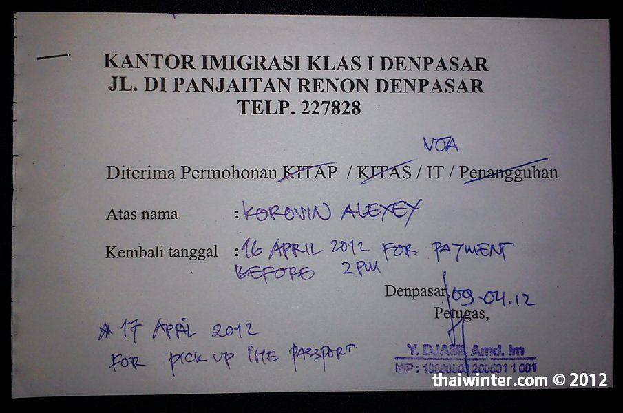 4) Вы приезжаете за паспортом, в котором стоит новый штамп (обычно назначают следующий день после дня оплаты)! И виза на Бали продлена на еще один месяц. Вуаля!