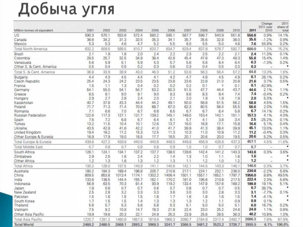 По углю — отставание от США, Австралии и многих стран Европы.