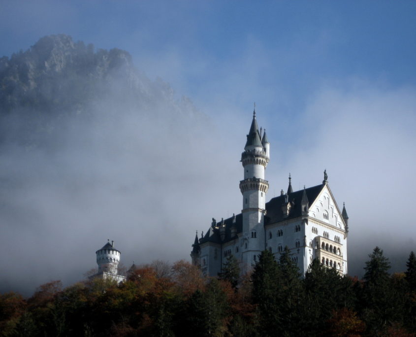 Когда моя мама была маленькая, в школьный Клуб интернациональной дружбы (КИД) пришло письмо из Германии, на которое она ответила. Так завязалась переписка двух пионерок, длившаяся несколько лет. Девочка немецкая высылала много разных открыток, фотографий артистов и достопримечательностей, в числе которых было фото со сказочно красивым замком, расположенным среди гор – с острыми высокими шпилями, множеством башенок и окошек. В детстве я очень любила рассматривать именно эту фотографию и представляла, что в таком замке непременно должны жить принцы с принцессами и все там у них в их маленьком королевстве должно быть чудесно, по сказочному. А потом, тысячи раз разглядывая символ студии Уолта Диснея, ловила себя на мысли, что он мне напоминает что-то, виденное мной в детстве. Мечты иногда имеют свойство сбываться, никогда бы не подумала, что через много лет я окажусь в этом самом Лебедином замке со сложным названием Нойшванштайн.