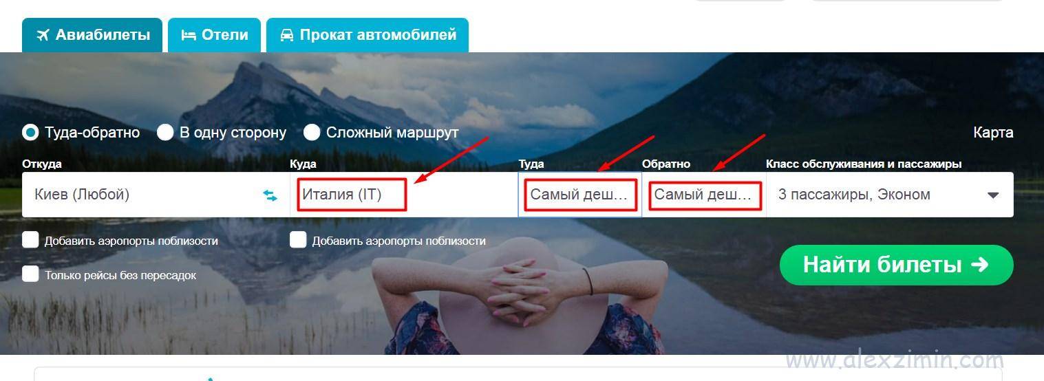 Авиабилеты в Италию лучше всего искать на одном из поисковиков авиабилетов – Авиасейлс, Скайсканнер, Момондо, а покупать можно напрямую на сайтах авиакомпаний.