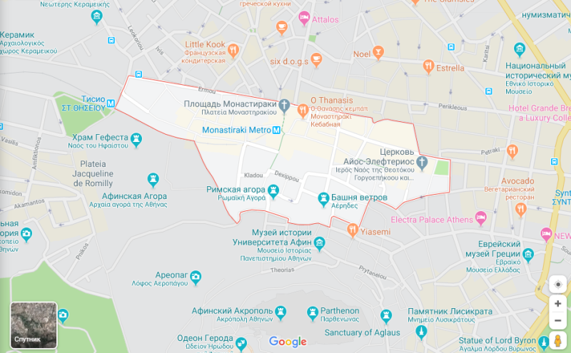 Справа станция метро «Монастираки». Источник фото: grekomania.ru