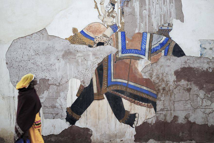Эта фреска находится на стене одного из зданий в Лакшмангархе. Удивительно, но она вполне неплохо сохранилась.