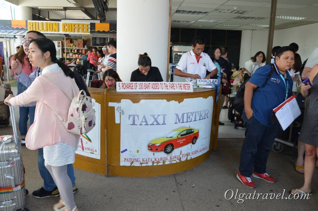 В любом тур конторе как в международном, так и внутреннем терминале аэропорта Пхукет вам предложат такси до нужного вам отеля / пляжа. Вы просто оплачиваете всю сумму поездки, вам выдают квитанцию об оплате, на которой указан номер машины, выходите на стоянку, ищите машину с указанным номером и едете в нужное место.