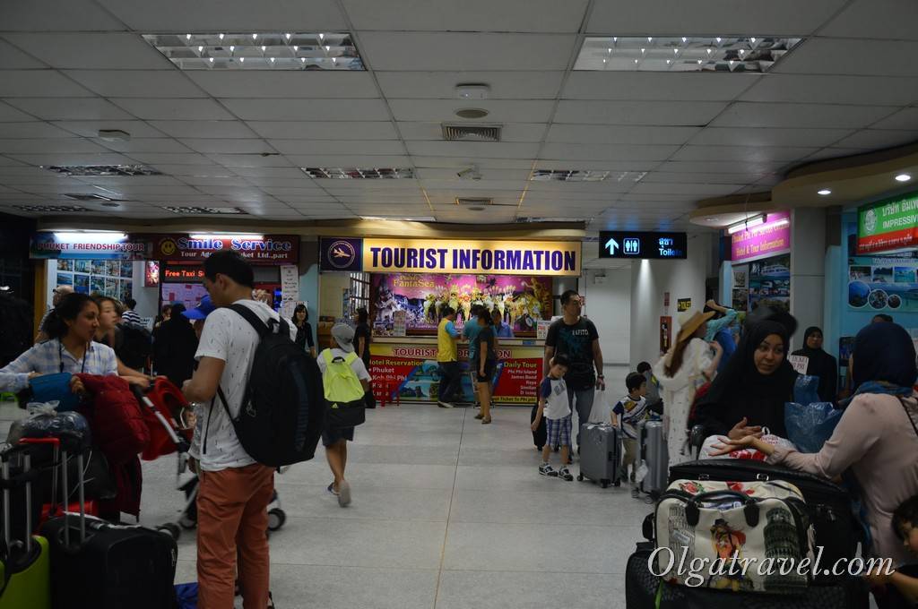 После прохождения паспортного контроля стоят стеллажи с буклетами и картами Пхукета. Смело берите — они бесплатные, специально для вас. Также есть несколько столиков, где можно купить тайскую сим-карту, пока ожидаете багаж. После его получения идите к выходу, в зал ожидания, где вас будут встречать представители туроператора. Если вы летите самостоятельно, то после выхода будет несколько стоек, которые предлагают минивэны к популярным пляжам Пхукета и такси.