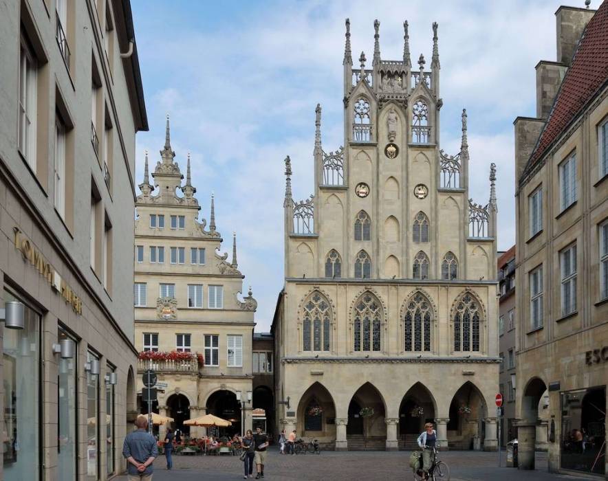- Мюнстерская ратуша, XIV в., сохранился только готический фасад, интерьеры были перестроены в более поздних стилях.