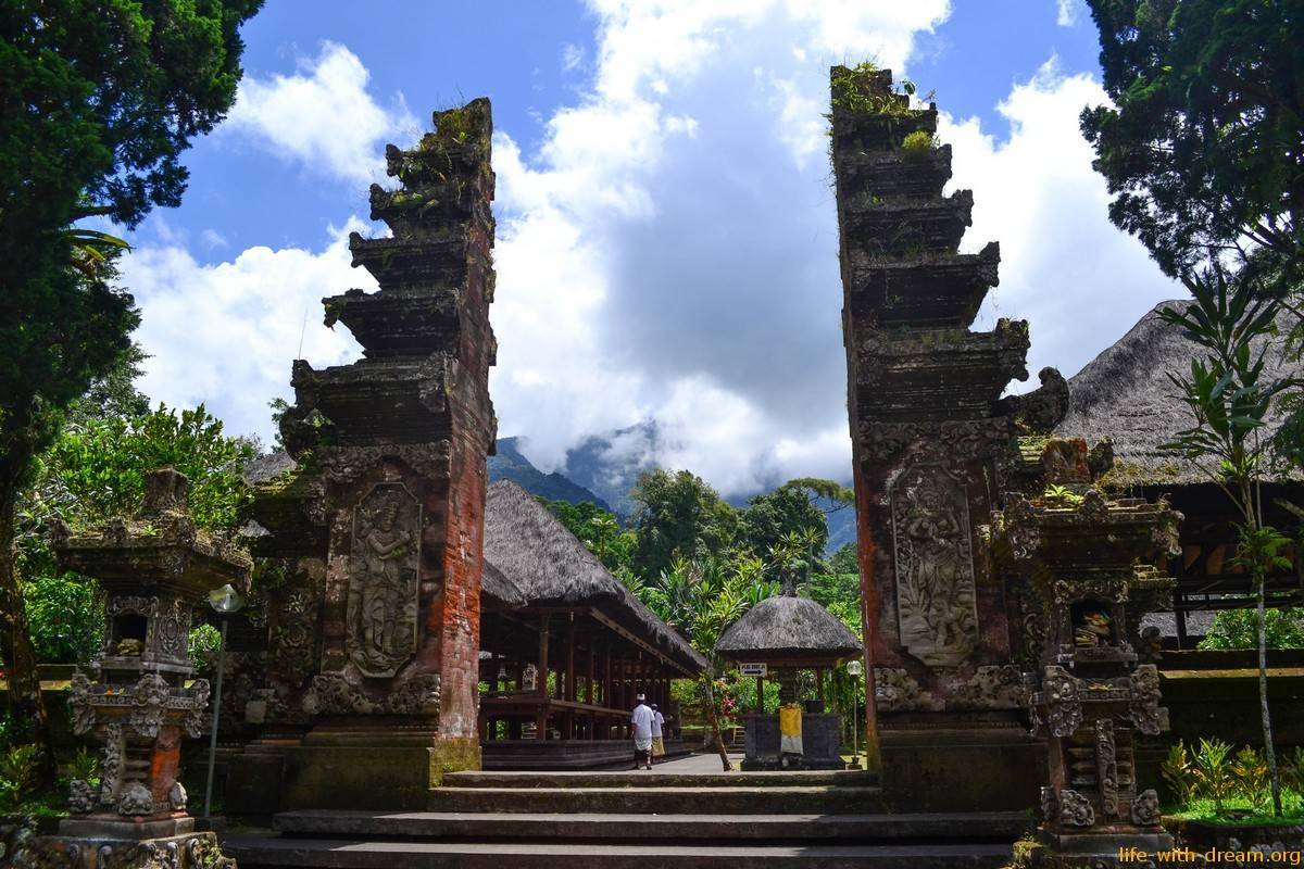 Храм Батукаро рекомендован нами к посещению на Бали. Он немного волшебный, находится в тени больших деревьев, припорошен туманом и облаками. Что-то в нем есть притягательное, очевидно.