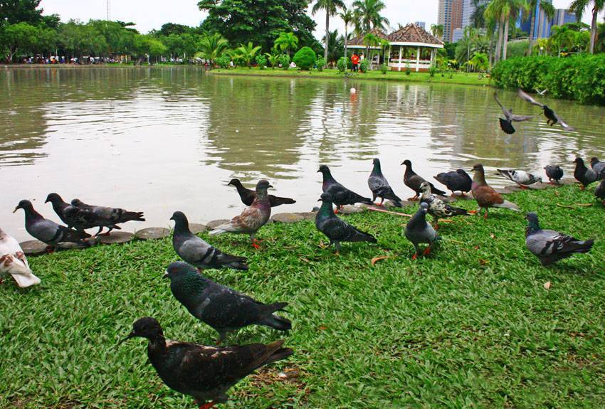 А еще здесь много красивых птичек, голуби повсюду у пруда, есть даже аисты, ну, или нечто вроде них, на тоненьких ножках)