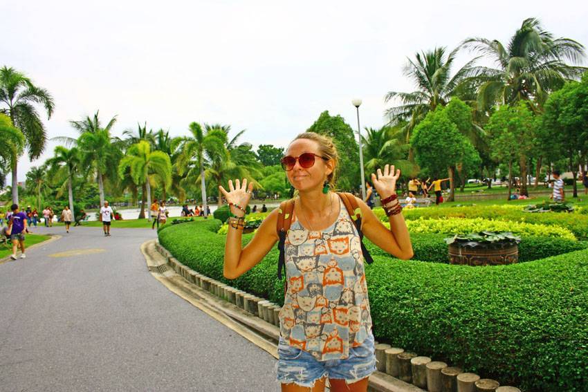 Вместо рынка я предпочла-таки прогуляться по расположенному рядом с ним парку. Это оазис спокойствия и отдыха в Бангкоке. Действительно, здесь все настолько чисто, культурно, аккуратно и сделано для отдыха, что не завалиться под дерево или хотя бы не сесть на лавочку в тени деревьев вряд ли у кого получится.