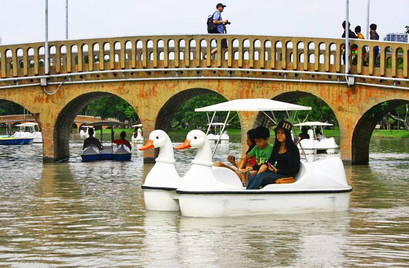 Парк Чатучак в Бангкоке работает с 4.30 до 21.00. Самый рай здесь, конечно, в обед, когда солнце нещадно печет, а ты лежишь у пруда под деревцем на травке, попивая прохладный лимонад. Многие приходят сюда семьями или большими компаниями на весь день, расстилают подстилки под деревьями (их же можно взять в парке на прокат за символическую стоимость хоть на весь день, а уходя, просто оставить под деревом), достают купленную неподалеку еду (за территорией парка) и так проводят свой выходной.