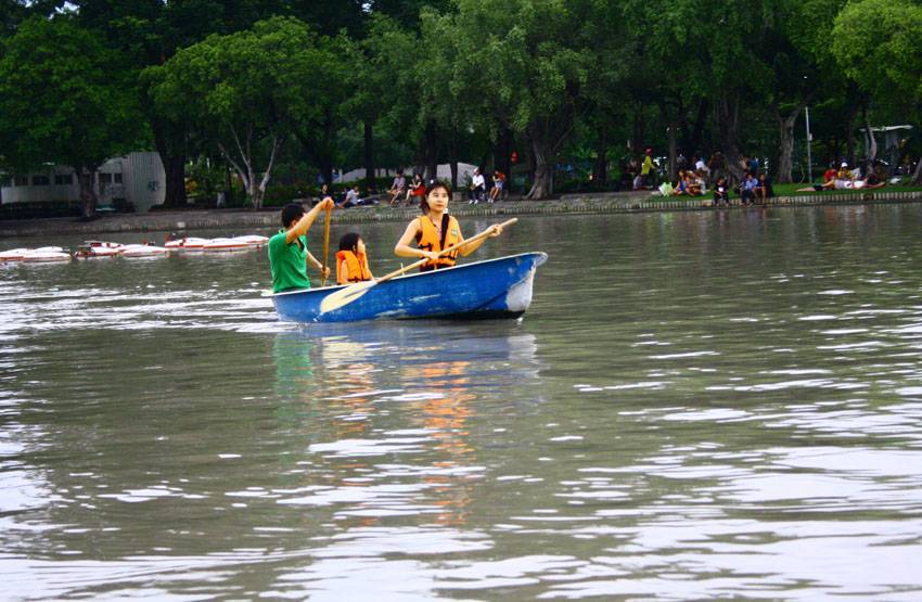Каждый занят своими мыслями или разговорами, делает нужные ему дела, спит, бегает, катается на лодке, не обращая внимание на остальных. Кроме одной симпатичной, бегающей тайки, которая незаметно подошла сзади, села ко мне на лавочку и попросила сфотографироваться вместе на ее телефон, что, в общем, и сделала