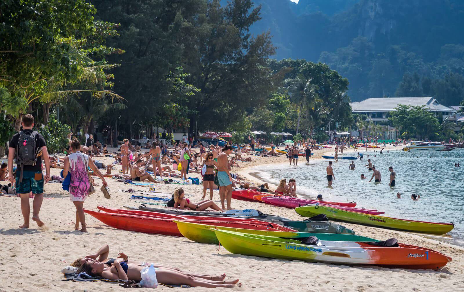 Затерянный среди моря и джунглей пляж, находится во владениях провинции Краби и на сегодняшний день считается самым посещаемым. Побережье включает несколько береговых линий, все они окружены известняковыми скалами с одной стороны, тропическими зарослями с другой стороны и морем с третьей стороны. Добраться до местечка можно на пароме или на лодке.