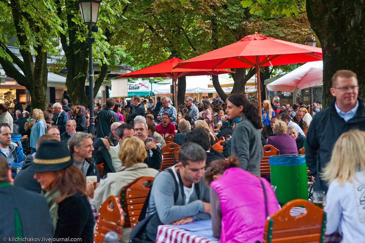 В Мюнхене есть не просто пивные, а целые пивные сады (Biergarten). Пивной сад — это особый формат ресторана, в котором столики стоят на открытом воздухе, в тени деревьев. Еду можно приносить с собой, а платить нужно только за пиво. Один из самых популярных биргартенов находится в Английском саду.