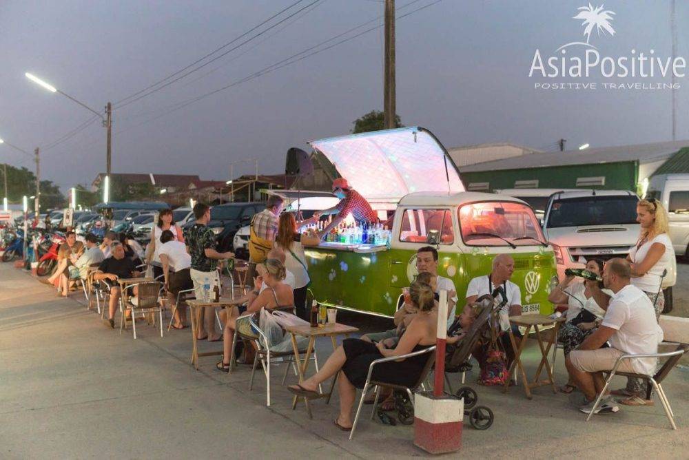 Мобильный бар со столиками, музыкой и настоящим барменом.