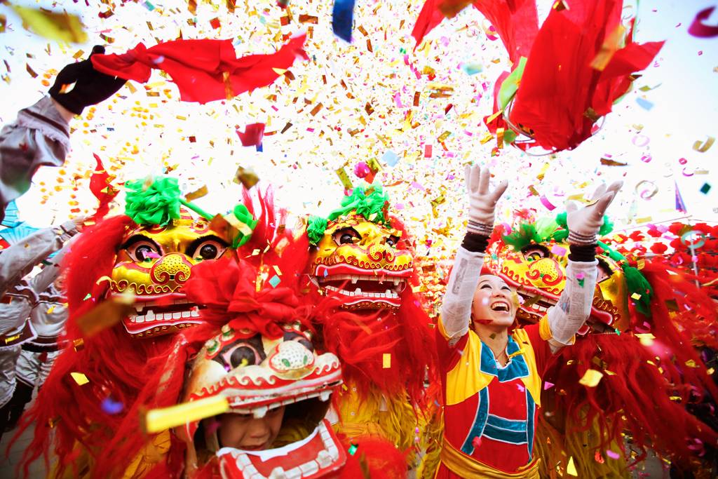 Танцы льва и дракона, хороводы, хождение на ходулях – яркие и запоминающиеся моменты праздника.