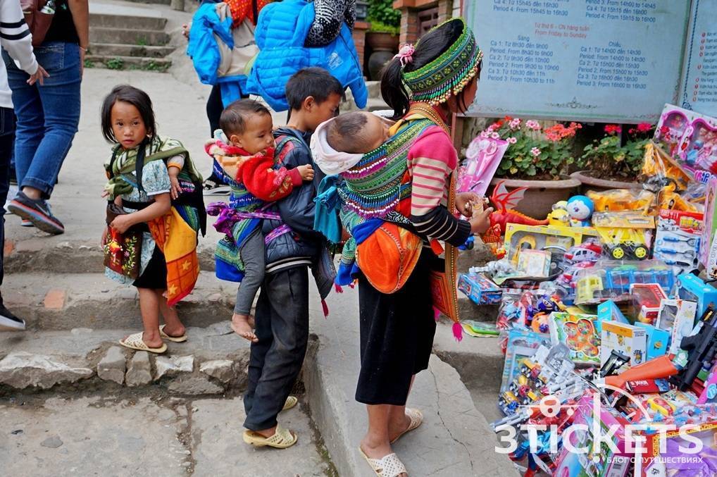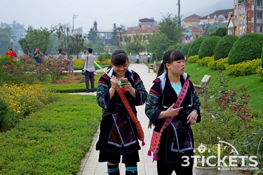 Все жители, кто бы они ни были, обычными вьетнамцами, содержащими отели или кафе, живут туризмом, собственно как и вся Сапа. Женщины в национальной одежде работают с туристами гидами и продают сувениры. В центре города грязненькие детки из племени продают фенечки туристам, но сильно не пристают.