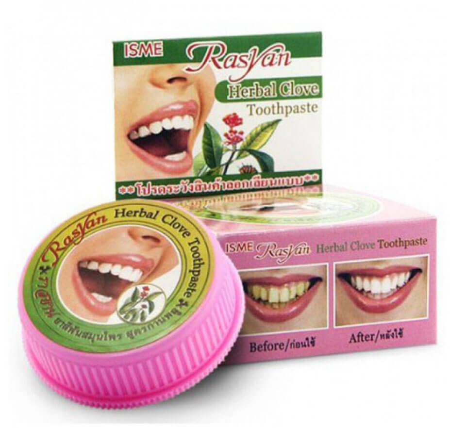 Многие туристы наслышаны о необычных круглых коробочках с коричневой пастой для зубов. Продаётся она и в виде тюбиков и очень хороша своим качеством. Как и обычные, тайские натуральные зубные пасты сделаны на основе трав. Есть отбеливающие, детскими и другие виды. Как вариант можно приобрести зубной порошок, но он тоже не будет похож на российский продукт. Хватает этих баночек надолго. Средство сильно пенится и для чистки зубов требуется всего-лишь небольшая капля этого средства.