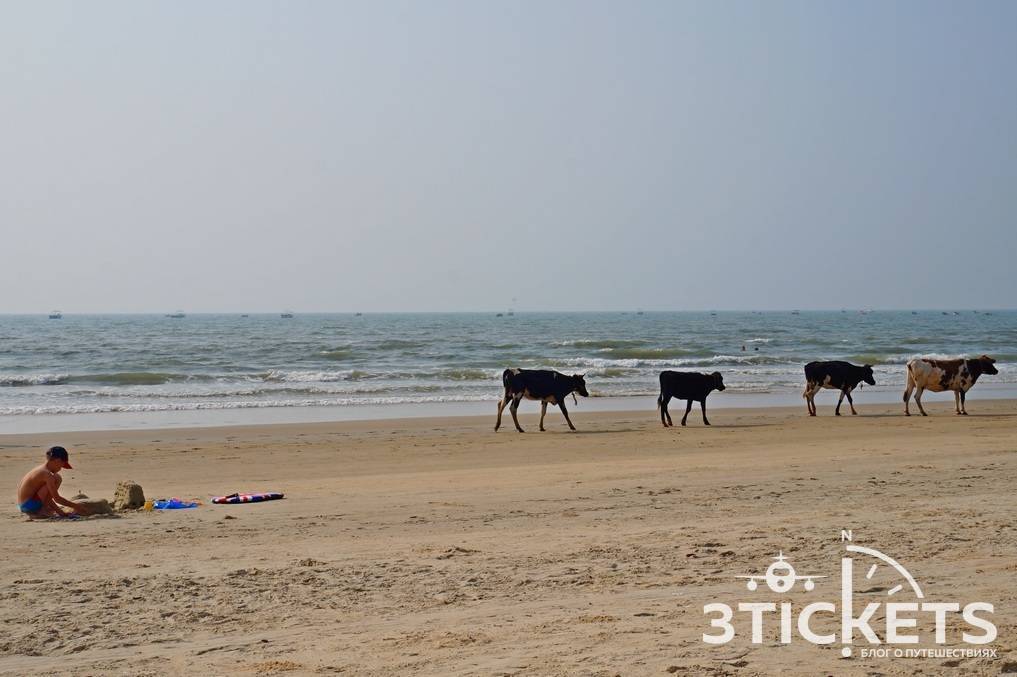 Дождь и ветер прогнали всех туристов с пляжа, и только вездесущим индийским коровам все нипочем