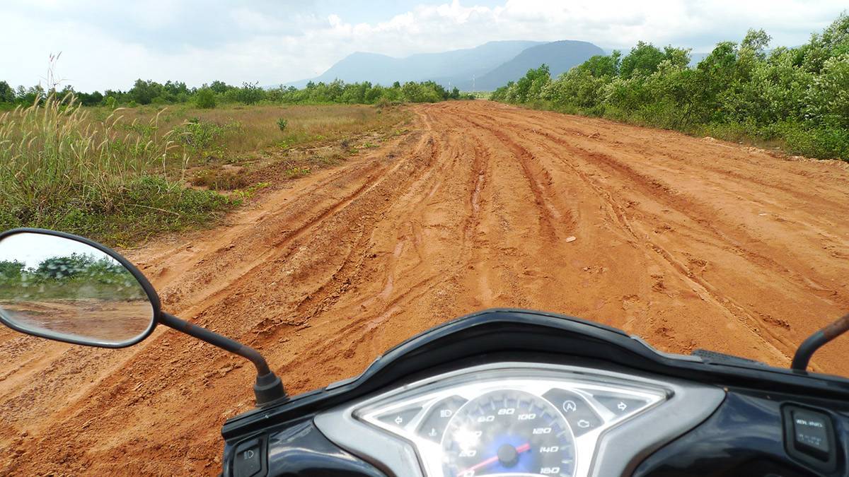 Дорога там пыльная, полная ям и потоплена тяжелыми грузовиками, так что это не очень приятно, особенно если вы балансируете доску под задницей (по моему опыту, лучший способ поставить доску на велосипеде). Последний бит это грунтовая дорога. После дождя становится очень грязно, поэтому не рекомендуется.