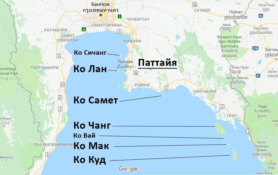 Ближайшие острова к Паттайе — Ко Лан и Ко Сичанг. Их можно посетить самостоятельно. Изумрудный остров, остров Принцессы и прочие сказочные названия — это всё экскурсионные острова. Дальние острова — Ко Самет, Ко Чанг, Ко Мак и Ко Куд. Последние относятся к провинции Трат, но все равно их называют островами возле Паттайи (300 км это же рядом).