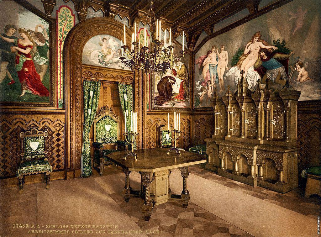 Считаю, стоит выделить Банкетный зал. Его еще называют «залом рыцарей». Говорят, именно здесь королю пришла в голову идея строительства Нойшванштайна.