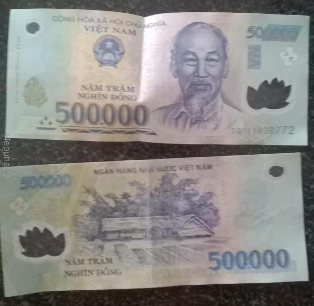 Самая мелкая купюра 1000 донгов, есть еще 500, но она встречается очень редко, самая крупная 500 000 донгов.
