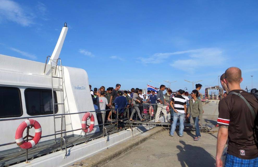 Оказавшись на пирсе, туристы попадают под пристальный контроль работников компании Ломпрайя, которые сопровождают их с момента прибытия автобуса до отправления на остров на борту катамаранов. Переправа занимает 3,5 часа.