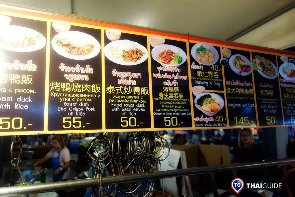 Наконец, в самом начале рынка имеется несколько кафе с тайской едой. Порция начинается от 30 бат.