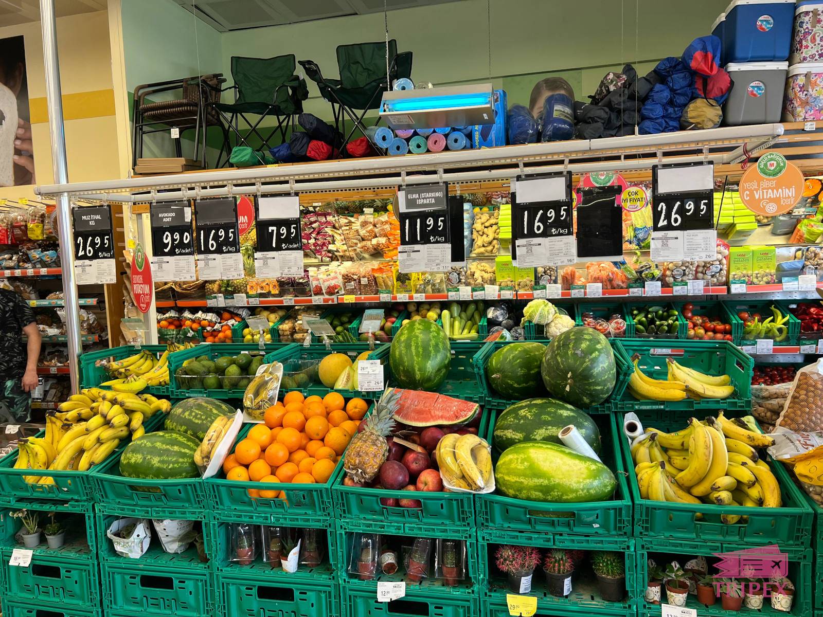 В магазины (Sok, Migros) и на рынок тоже забегали ради любопытства, но ничего особенно не брали. Примерные цифры с прилавков, 2023 год: