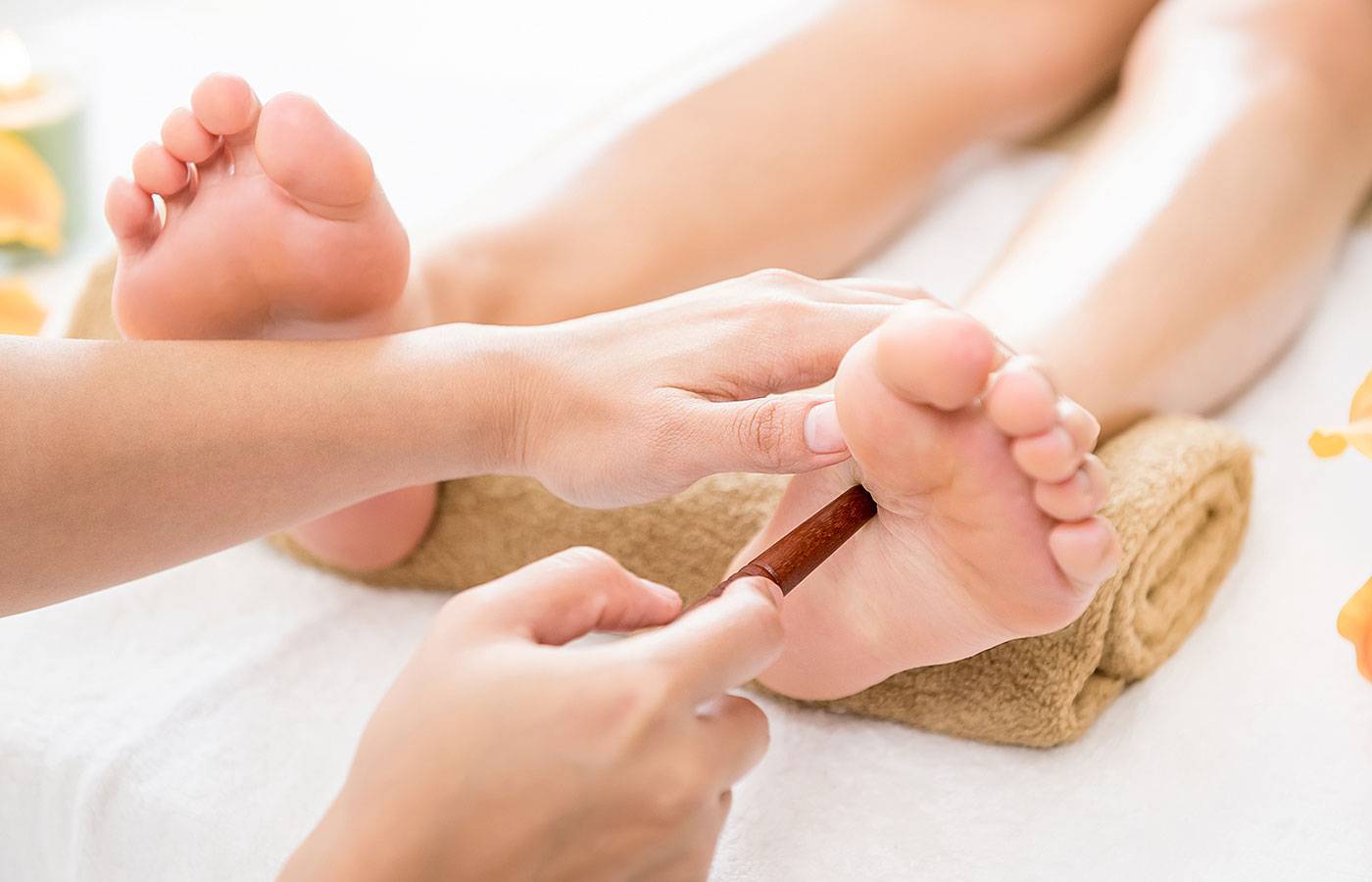 Стоит понимать, что кроме ступней, массаж осуществляется даже на голенях, икрах. Массажист сначала выполняет все манипуляции при помощи рук, а потом продолжает процедуру специальным приспособлением из бамбука. Использование полезных скрабов и натуральных масел делает процедуру еще приятнее, а кожу ног — привлекательнее.