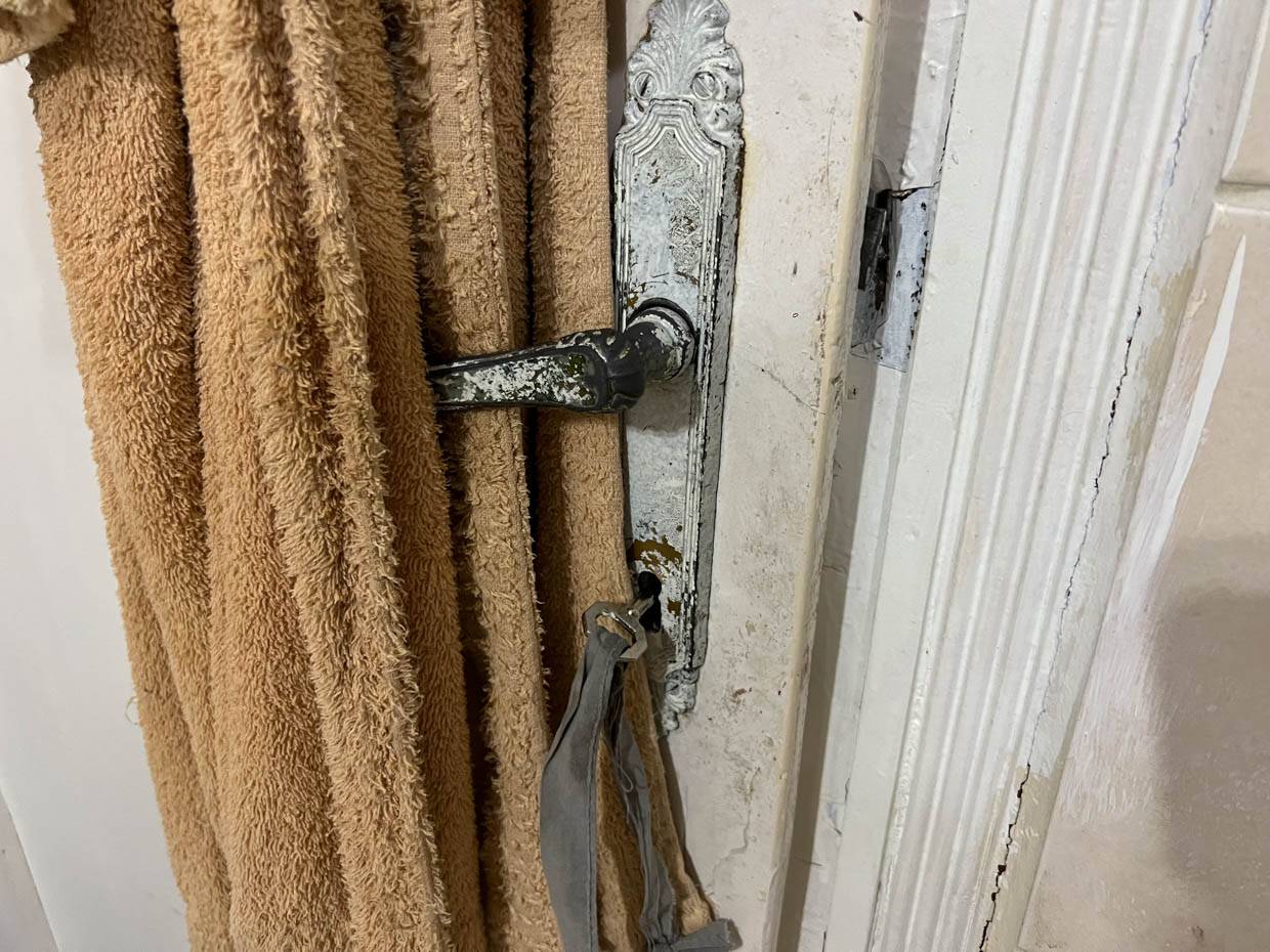 На двери висит какой-то старый и вызывающий подозрение халат, до которого страшно дотрагиваться.