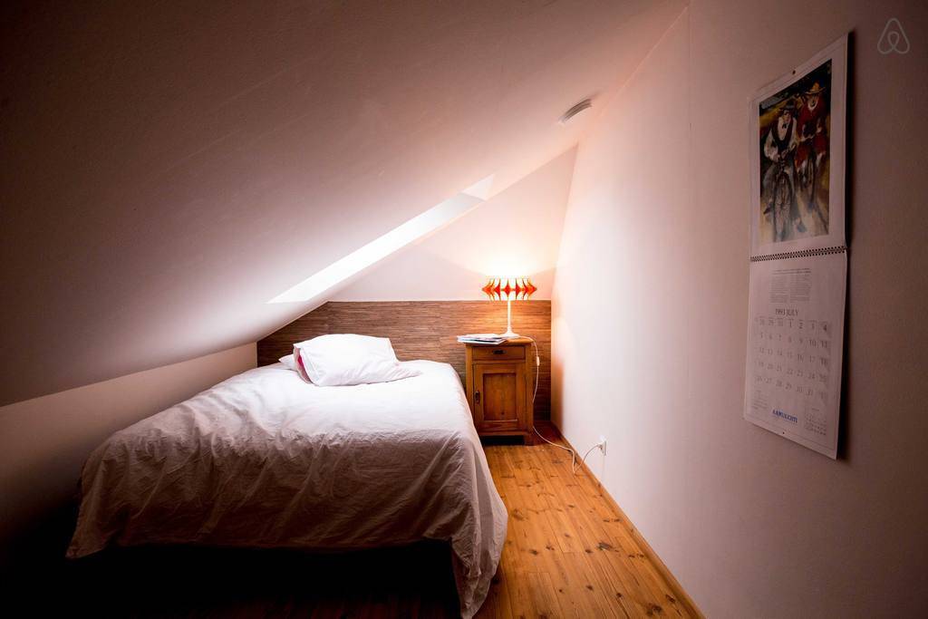 Жилье площадью 30 кв. м находится на четвертом этаже. Из-за чердака в некоторых местах потолки скошены. Это не очень удобно для высоких людей, но придает помещениям дополнительный шарм. Отдыхайте на большой двуспальной кровати, готовьте еду в кухонном уголке и пользуйтесь роскошной ванной. Нет телевизора, но в путешествии это не слишком большая проблема!